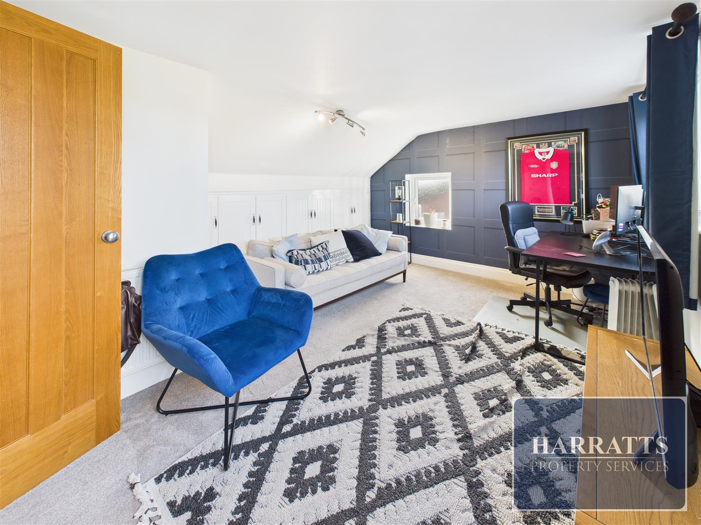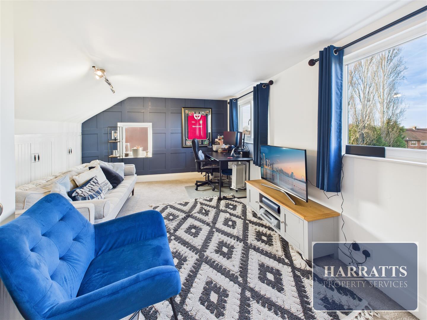 The ground floor comprises a welcoming entrance hall, a well-proportioned lounge, and a modern fitted kitchen which opens seamlessly into a spacious family room and an adjoining dining room. To the first floor are three bedrooms and a contemporary family bathroom, while the second floor hosts an impressive master bedroom of excellent proportions.
