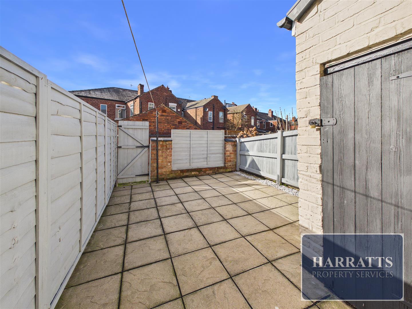 To the rear, the property benefits from a private, enclosed, low-maintenance patio garden. There is also an outhouse housing the boiler, providing further practical storage space.