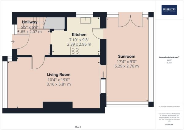 The kitchen is well-appointed with ample worktop and cupboard space, along with room for essential appliances. Its thoughtful layout provides practicality while remaining connected to the rest of the home, thanks to its direct access to the rear reception area.