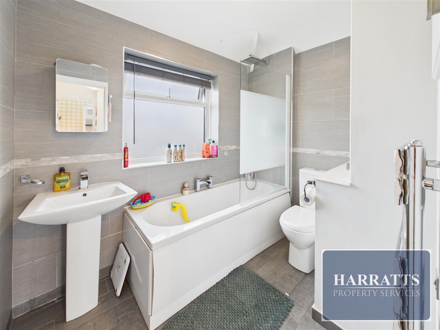 Upstairs, the home features three generously sized bedrooms, two of which are comfortable doubles. Completing the first floor is a modern family bathroom fitted with a bath and shower over, a washbasin, and a low-level WC.