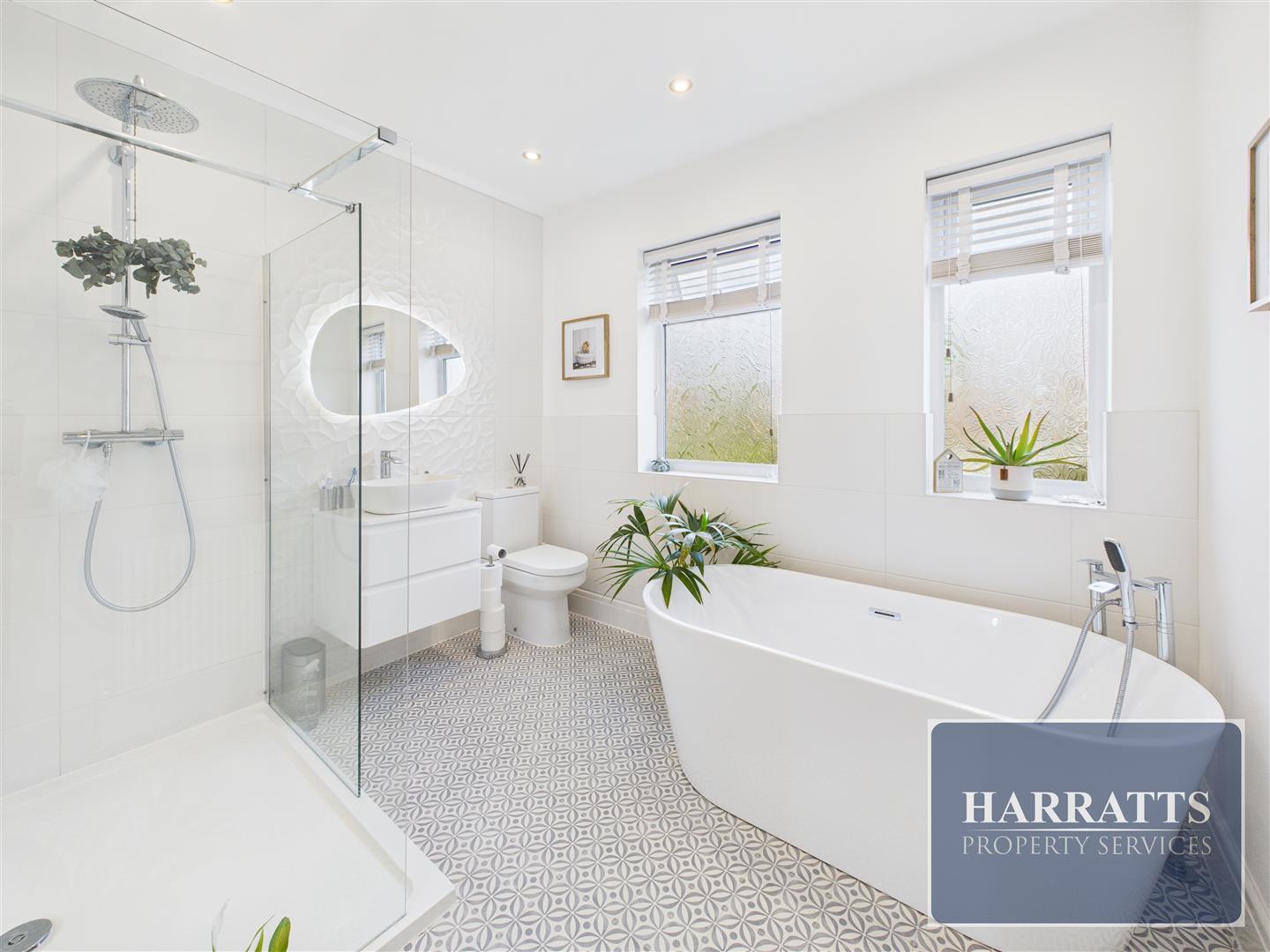 The first floor offers three well proportioned bedrooms with laminate flooring, an additional storage room, and a luxurious modern bathroom comprising of a freestanding bath, walk-in shower, wash hand basin and WC.