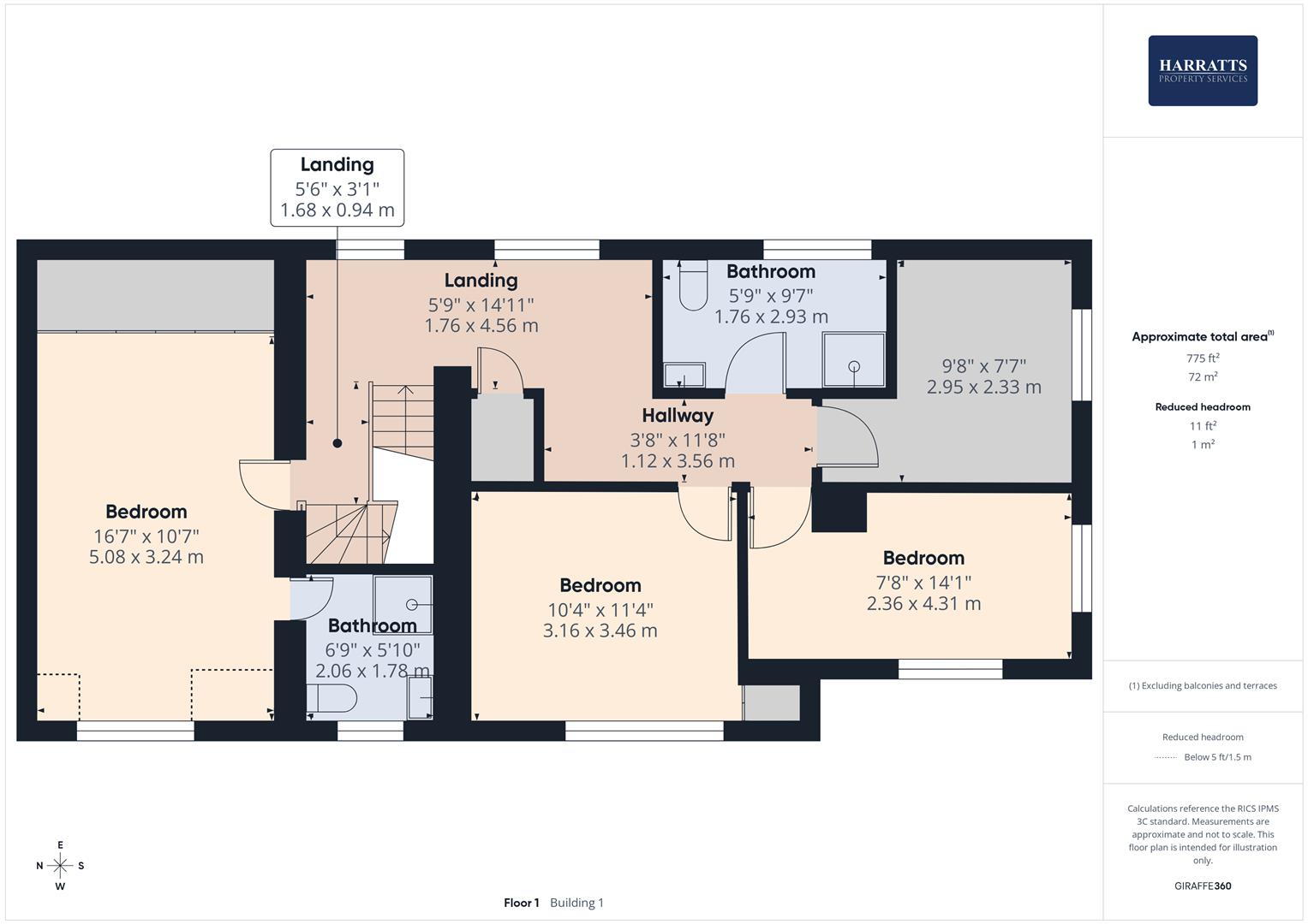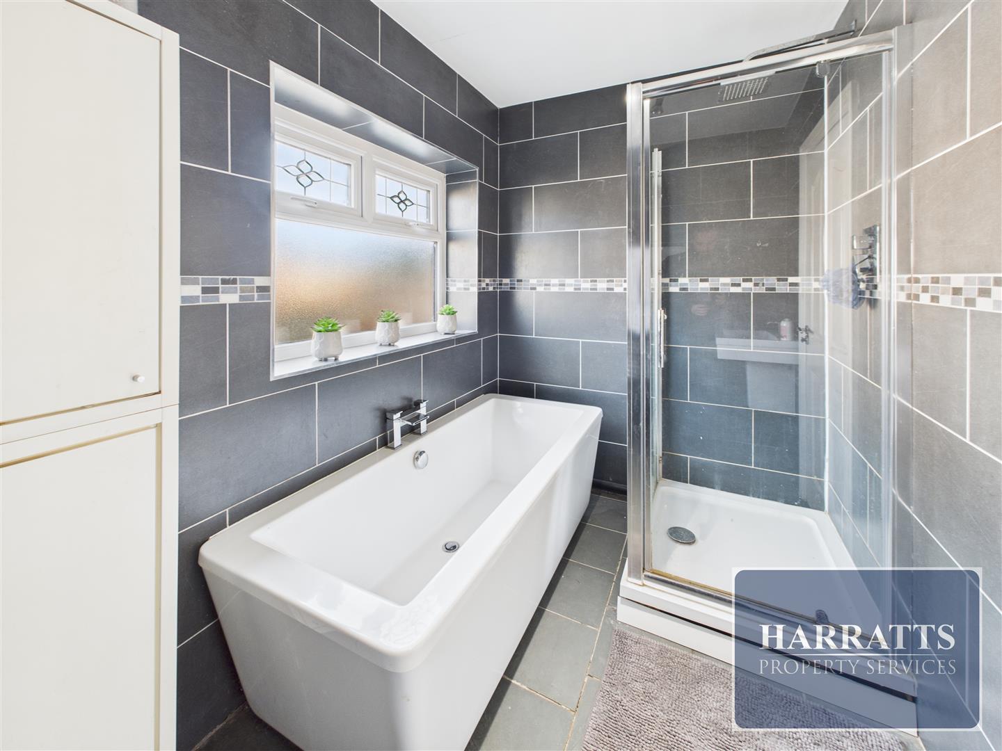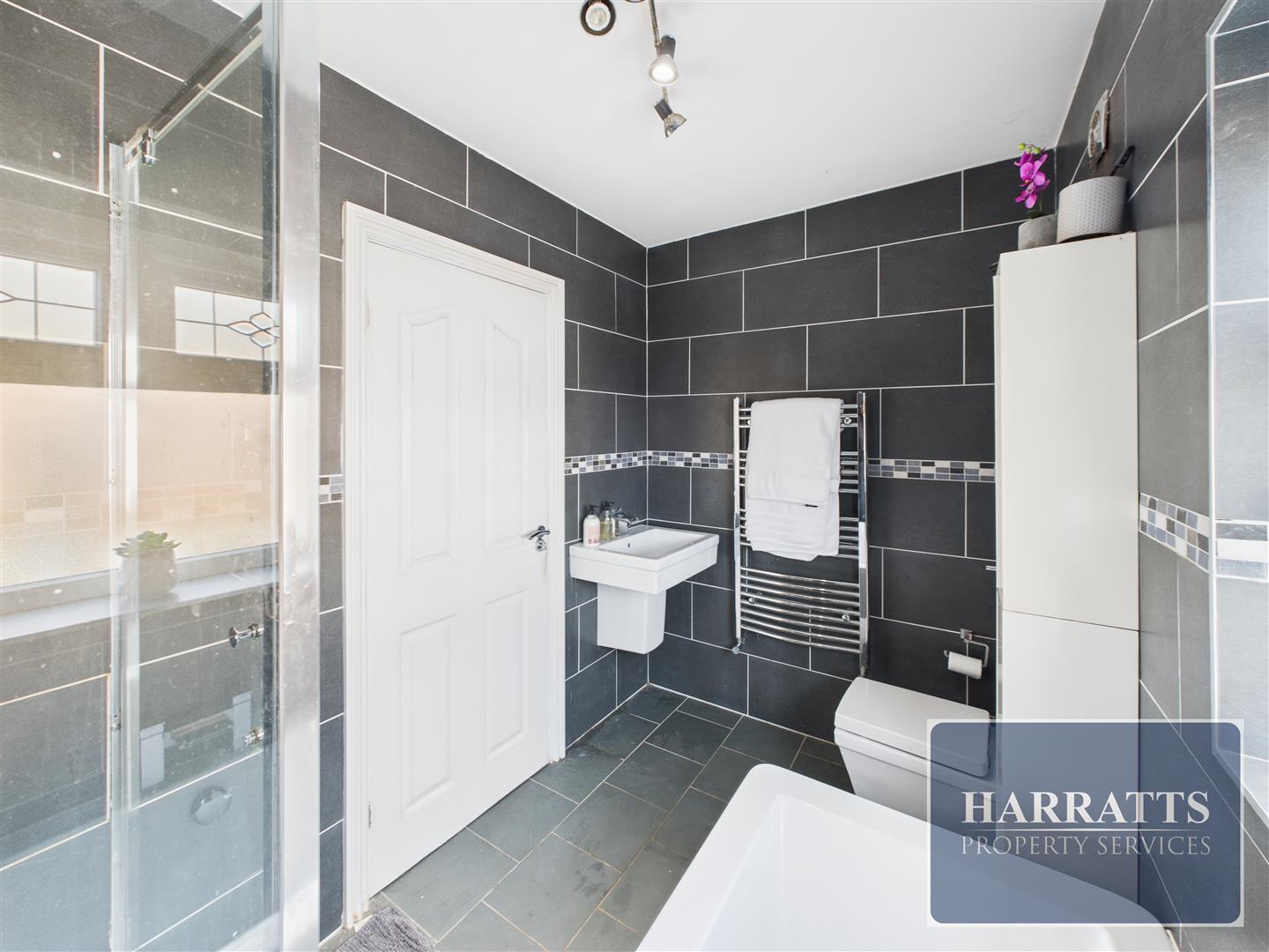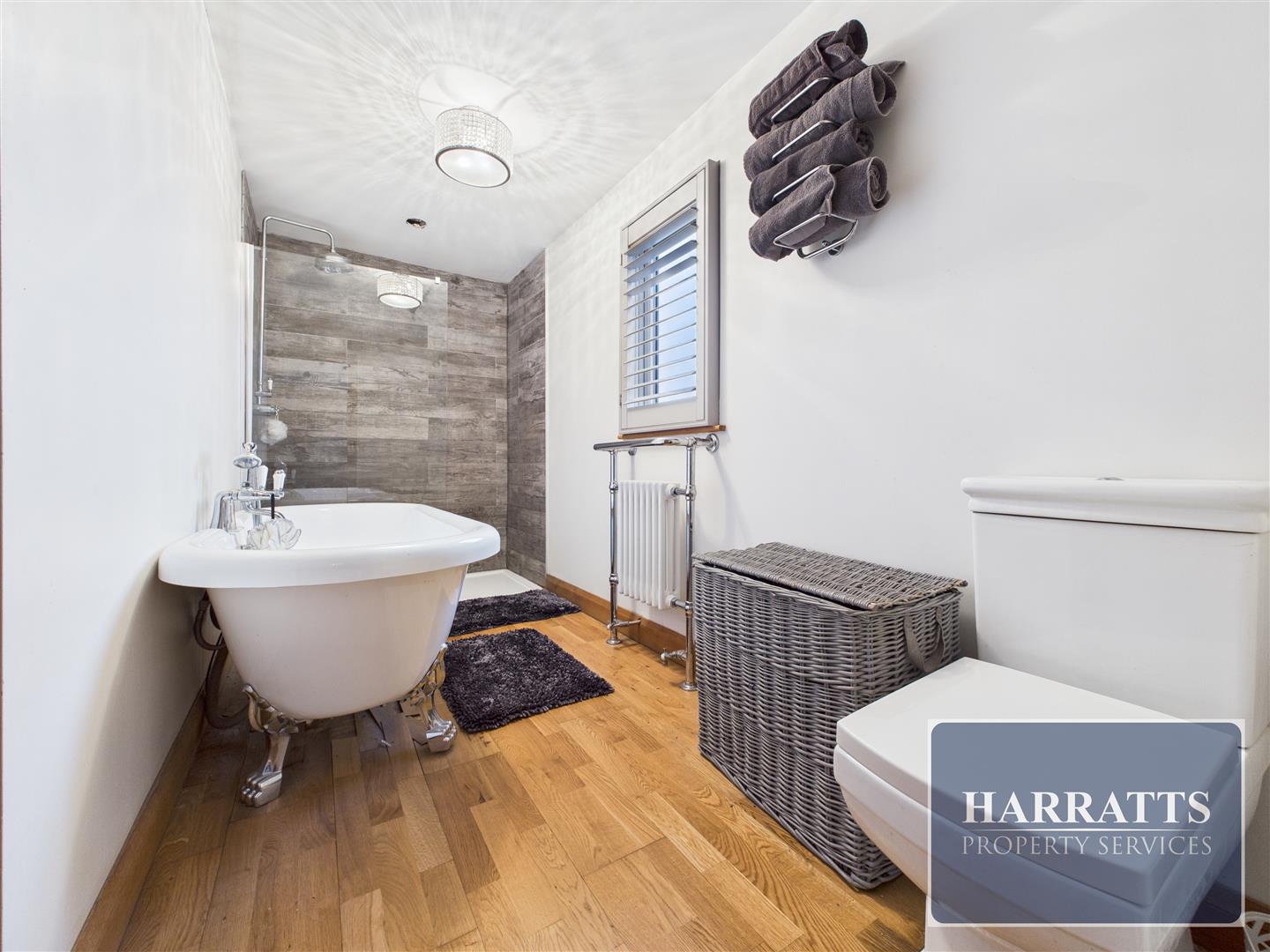 The first floor comprises four well-proportioned bedrooms, all of which are doubles. One bedroom benefits from a private wet room with shower, sink, and WC. A stylish family bathroom completes this level, featuring a free-standing bath, separate shower cubicle, sink, and WC.
