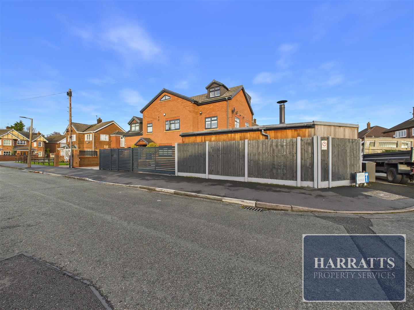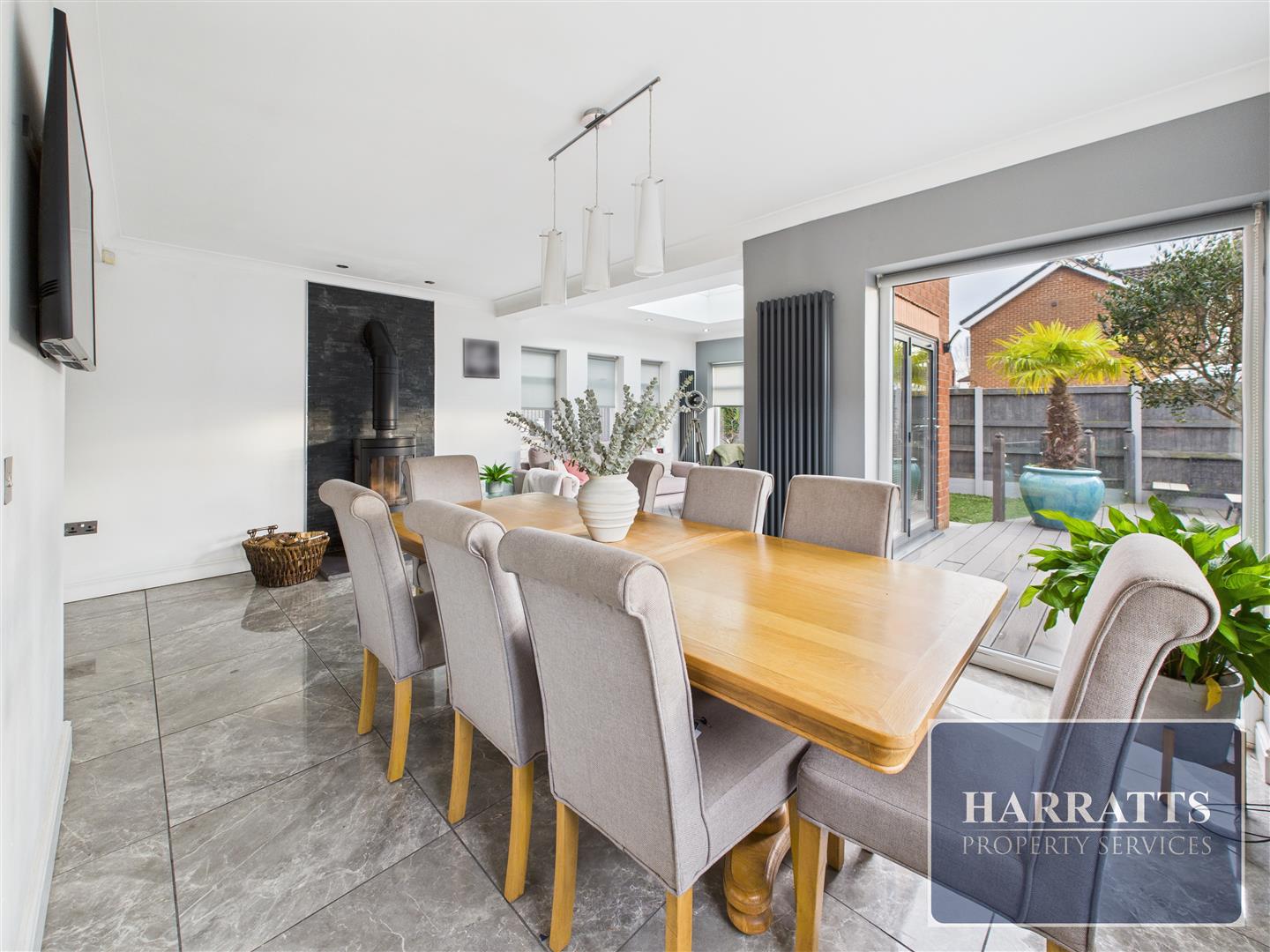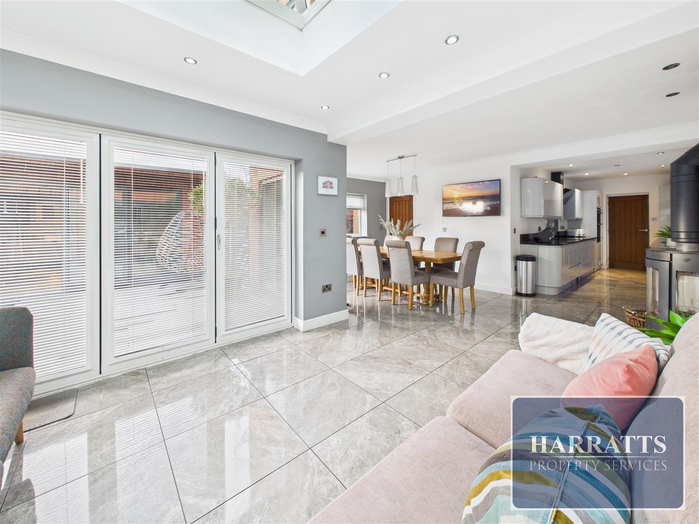 Harratts are delighted to present this immaculate five-bedroom detached family home, ideally positioned on the highly sought-after Clifton Drive in Heald Green. Offering spacious and stylish accommodation throughout, standout features include an impressive open-plan kitchen-diner, outdoor kitchen, detached bar/games room, and a luxurious master suite.The property welcomes you with an inviting entrance hallway, leading into a generous lounge featuring a contemporary media wall. The true heart of the home is the stunning open-plan kitchen and dining area, complete with bi-fold doors opening directly onto the rear garden — ideal for indoor-outdoor living and entertaining.