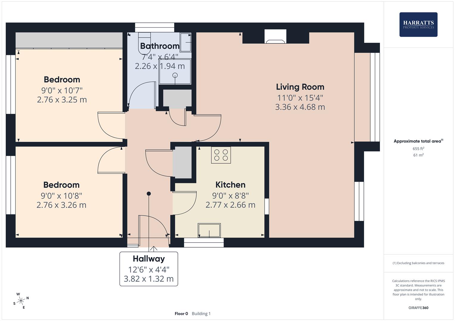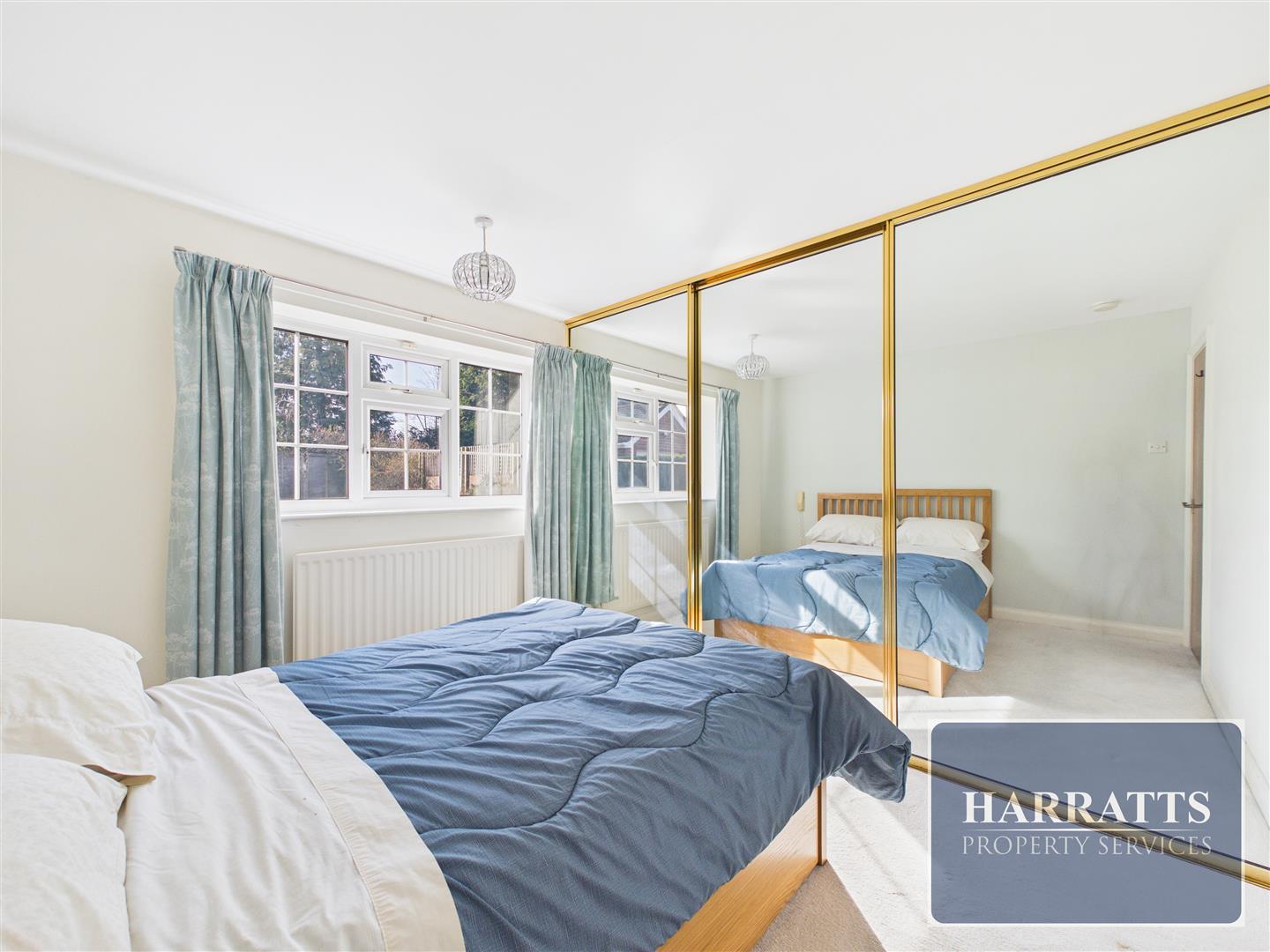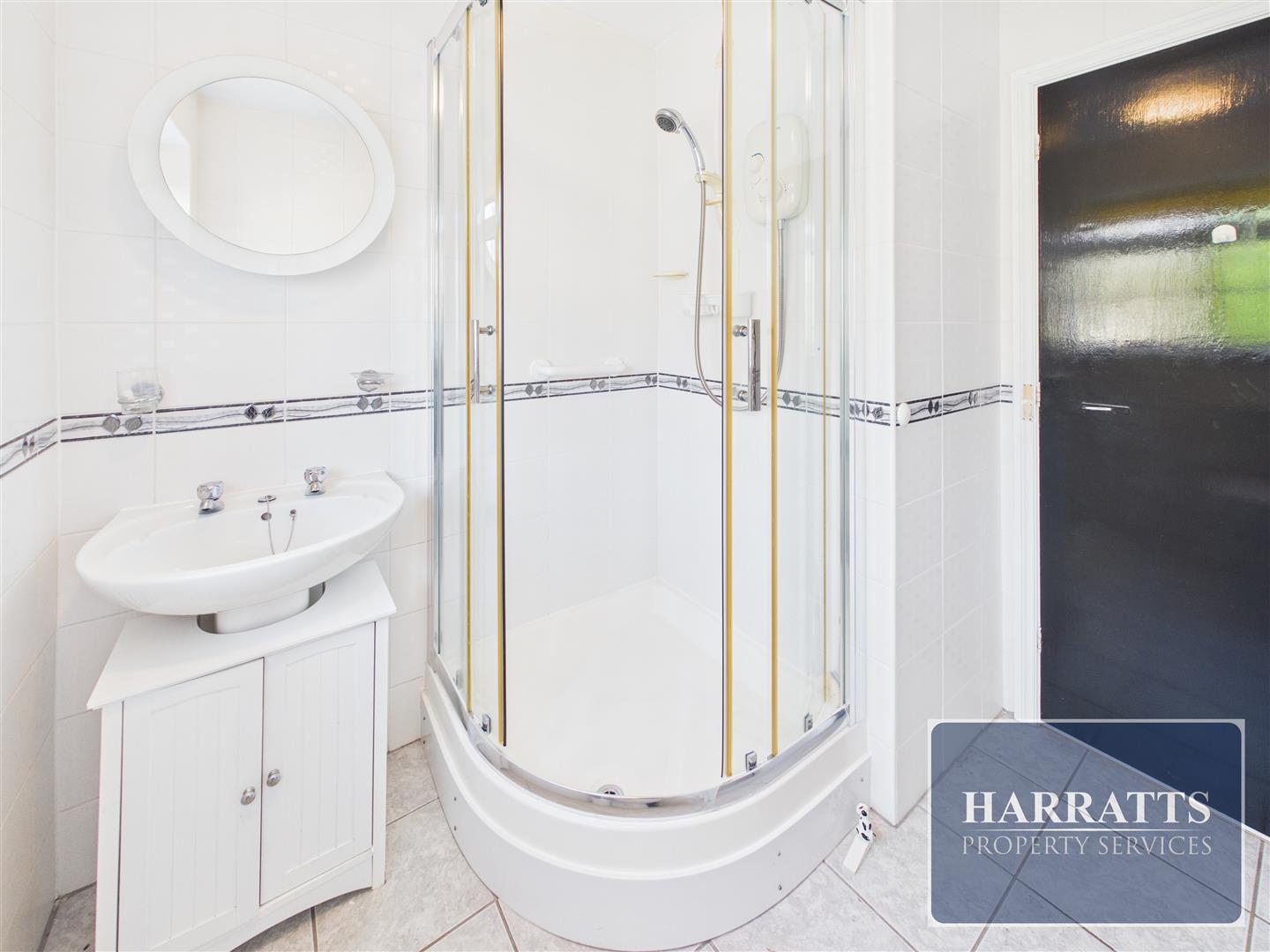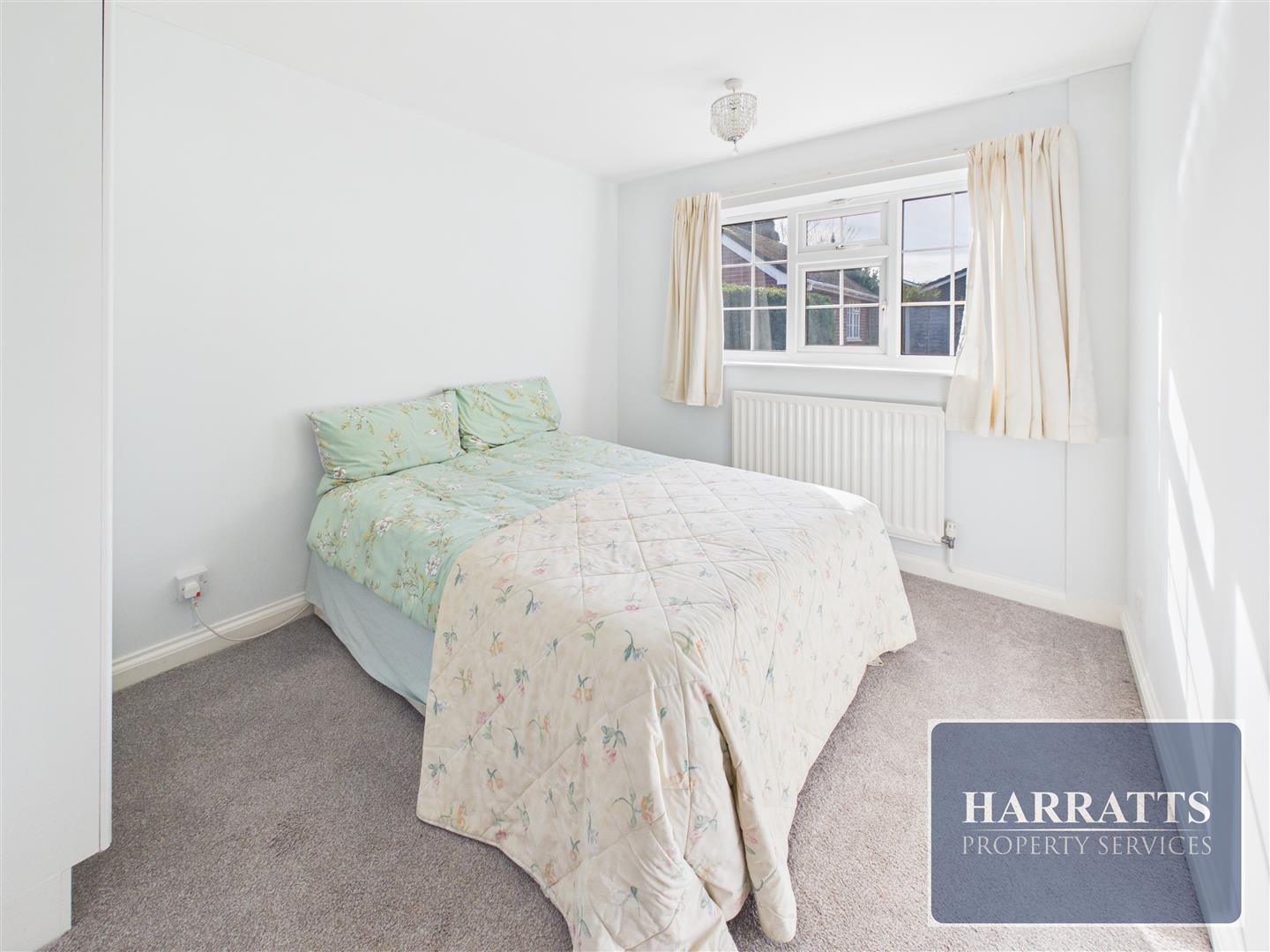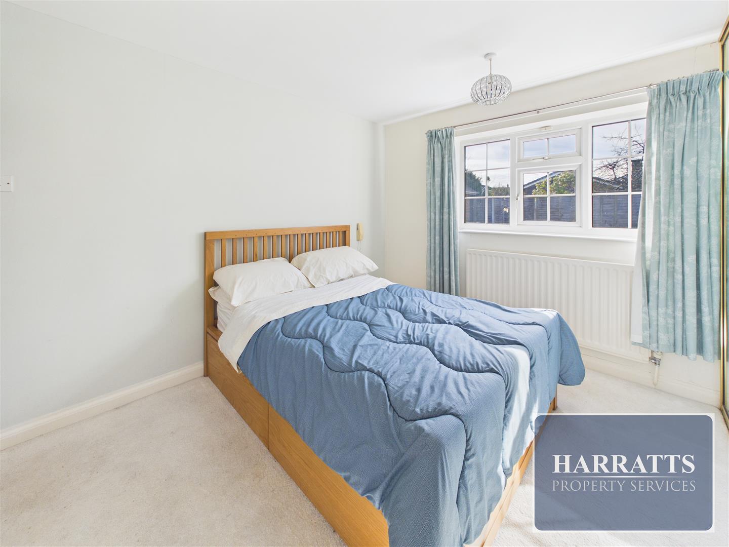 From the hallway, there are two generously sized double bedrooms, each enjoying pleasant views over the rear garden, creating bright and comfortable sleeping spaces. The easily accessible bathroom is fitted with a shower cubicle, basin, and low-level WC, offering all the essentials for modern living.
