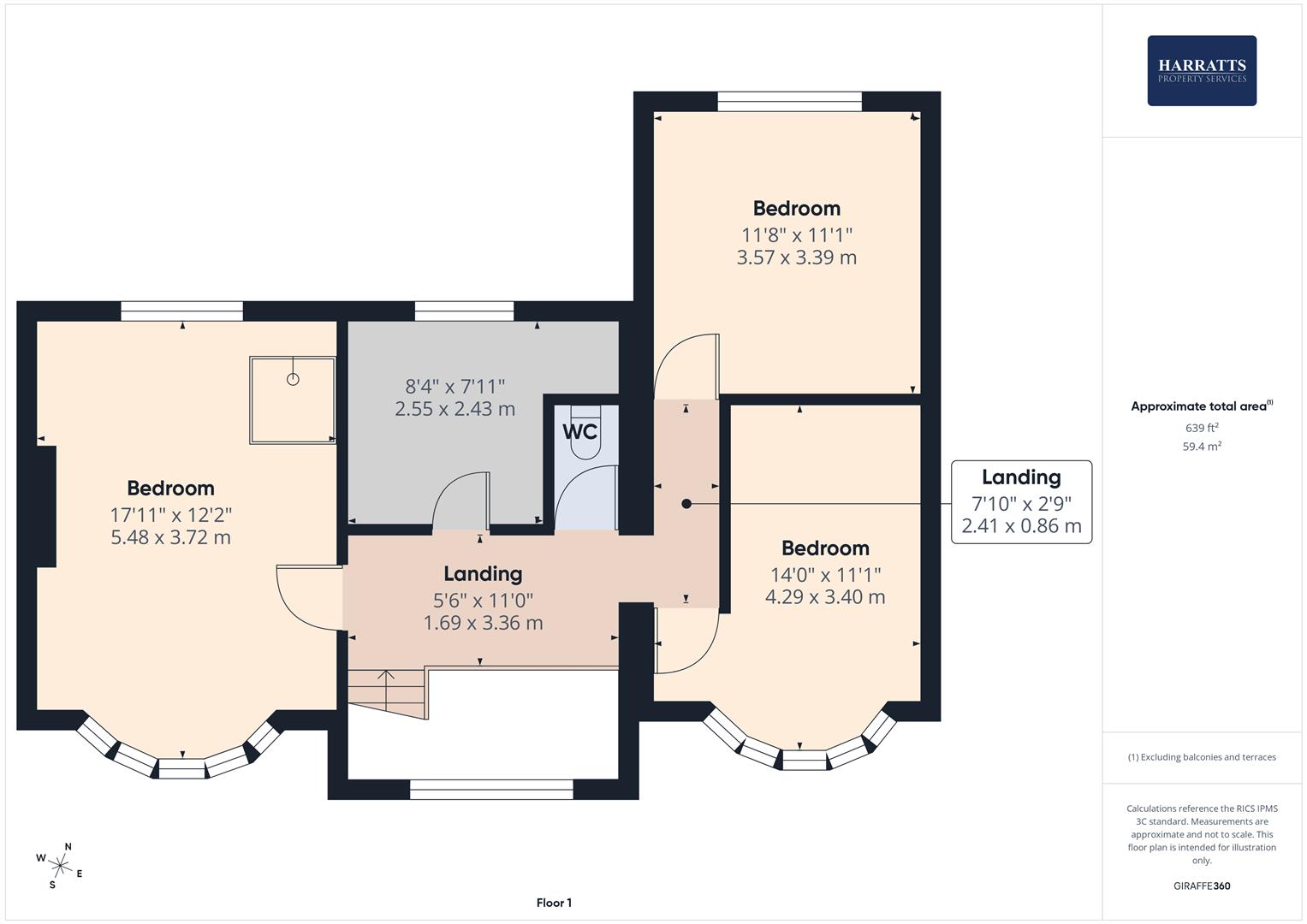 To the first floor are three double bedrooms, with the master bedroom currently accommodating a shower cubicle. From the landing, there is also a separate room designated for bathroom facilities, as well as an independent W/C.